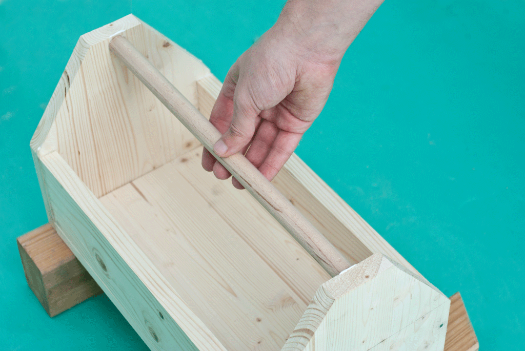 При помощи клея собирается днище и боковины в форме прямоугольников, дополнительно увеличить прочность необходимо гвоздями. Затем следует вставить рукоятку и закрепить ее гвоздями либо любым другим способом.