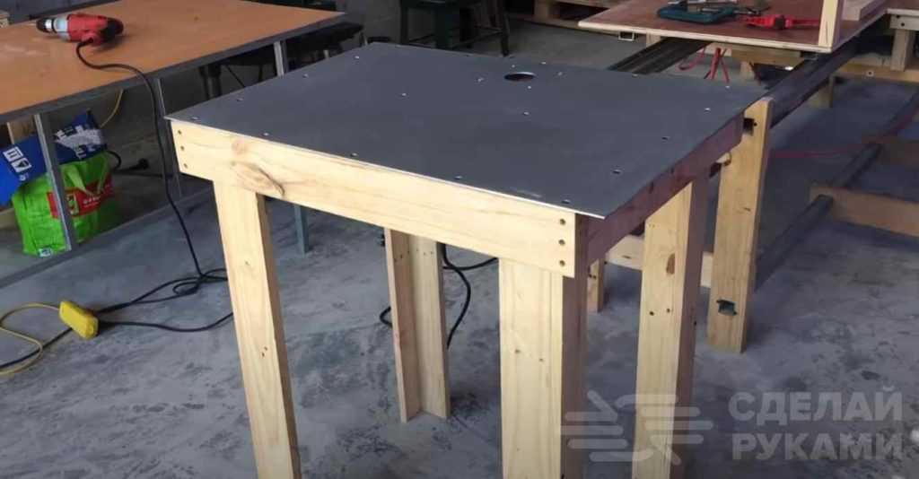 Обратите внимание: рабочая поверхность фрезерного стола должна быть как можно более плоской и гладкой, поэтому лучшим выбором будет листовой металл. Также подойдет ДСП или ламинированная фанера