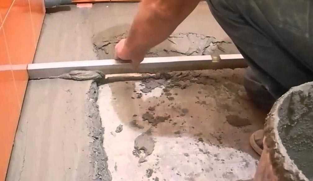 Если плиточную поверхность собираются устраивать в ванной комнате, то необходимо после заделки бетоном выполнить гидроизоляцию.