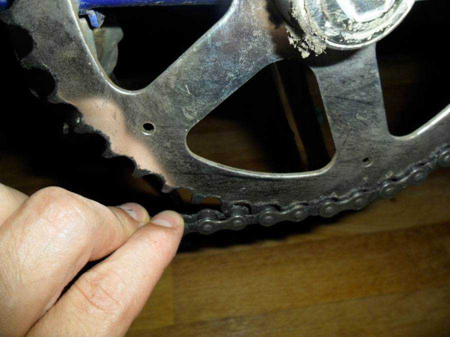 Износ в «домашних условиях» в первую очередь определяется по растяжению. Растянутая цепь – причина для беспокойства, так как смещение звеньев серьёзно повреждает звёздочки и может быть опасно для переключателей.