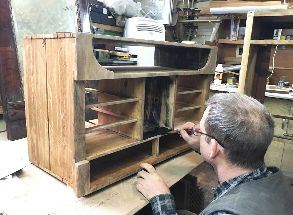 Перед началом реставрации мебель осматривается, снимается вся фурнитура.