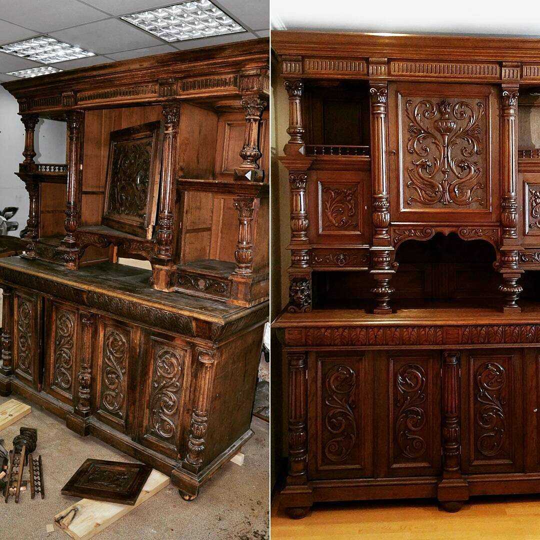 Для того, чтобы восстановить вашу мебель, необходимо тщательно подготовить ее к дальнейшей работе. Для начала производится полный осмотр, выявляем все нарушения целостности, трещины, различные сколы или потертости. Снимаем всю фурнитуру, которую возможно. При этом необходимо разобрать и(или) снять все элементы, закрывающие доступ к труднодоступным местам деревянной мебели, это могут быть полки, навесные дверцы, ящики и т.д.