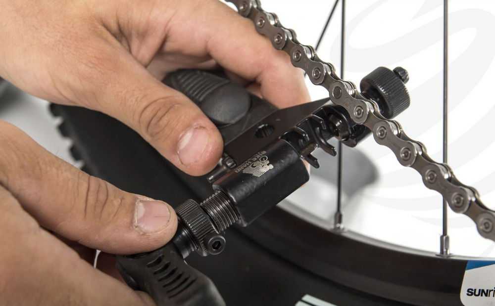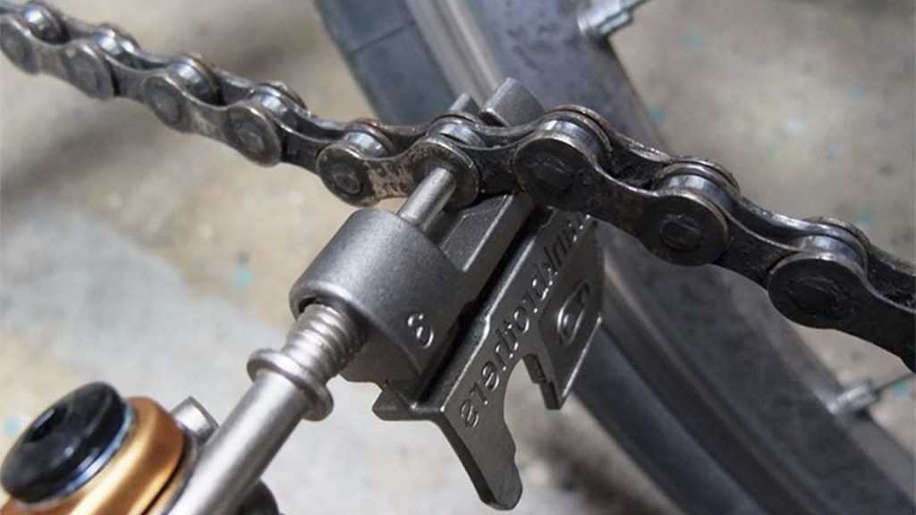 В этом случае помогает специальный инструмент, который называется выжимка цепи (веловыжимка). Они бывают как в отдельном исполнении, так и в виде велосипедного мультитула, что значительно удобнее в поездке или дома.