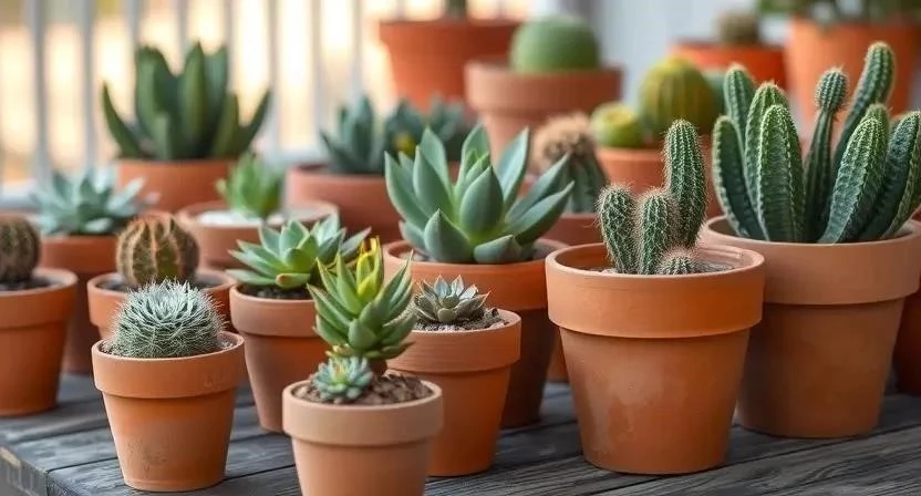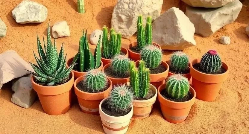 - Кактусы: Различные виды кактусов – идеальный выбор для создания пустынного стиля.