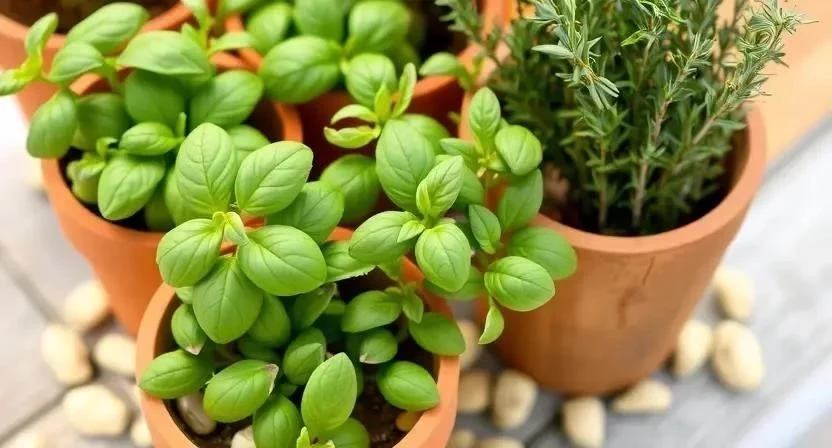 - Тимьян: Небольшой кустарник с мелкими листьями, обладающими пряным ароматом. Прекрасно растет в горшках и не требует особого ухода.