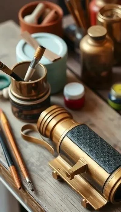 Для покраски понадобятся акриловые краски, кисти, грунтовка (при необходимости). Для декупажа – клей для декупажа, салфетки с рисунком, лак. Для обмотки тканью/веревкой – ткань или веревка, клей. Для бинокля из бумаги/картона – плотный картон, ножницы, клей, линейка. Для использования старых деталей и фурнитуры – старые пуговицы, бусины, кружево, клей.