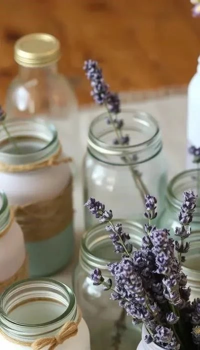 1. Банка в стиле «Прованс» с кружевом: Используйте белую акриловую краску, кружево, клей ПВА и декоративные элементы (бусины, ленты). Покройте банку краской, дайте высохнуть, затем аккуратно приклейте кружево. Добавьте декоративные элементы по желанию.