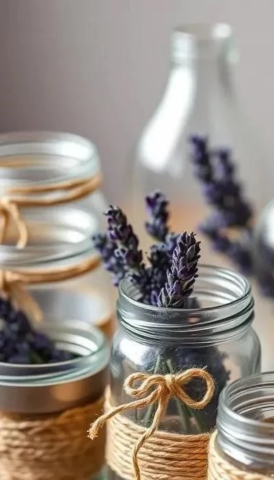 - Ваза из банки: Обмотайте банку бечевкой, украсьте искусственными цветами или сухоцветами.