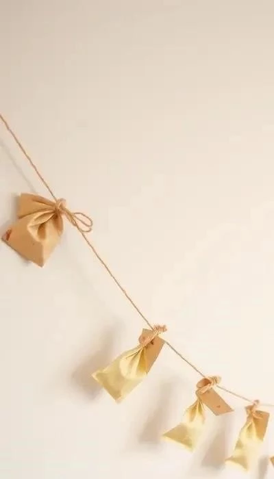 5. Гирлянда из чайных пакетиков: Вырежьте из пакетиков различные фигуры (сердечки, звездочки, кружочки). Соедините их между собой нитью или леской, создавая праздничную гирлянду.