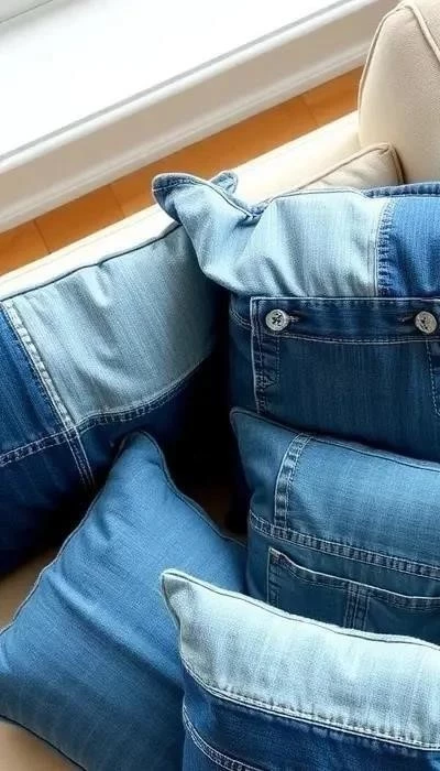 Чехлы на подушки из денима – это простой и эффектный способ преобразить интерьер, добавив в него нотку рустикального шика. Используйте различные элементы комбинезонов – карманы, швы, заплатки – для создания уникального дизайна. Можно сшить чехлы из цельных кусков ткани, комбинировать разные оттенки денима или добавить декоративные элементы, такие как вышивка, аппликации или кружево. Такие подушки идеально впишутся в интерьер в стиле кантри или бохо.