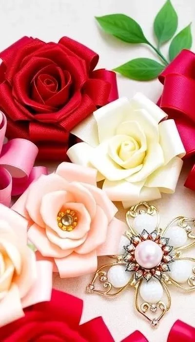 Цветы и броши из атласных лент – элегантный и стильный аксессуар, который подчеркнет вашу индивидуальность.