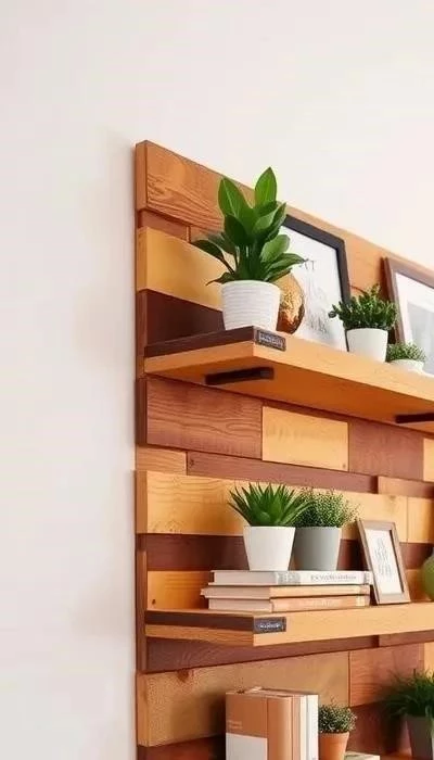 - Настенные полки из поддонов: Разберите поддон на доски и сделайте из них настенные полки.