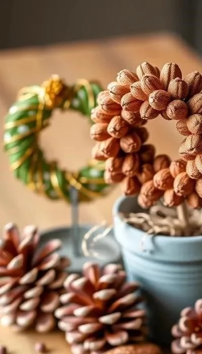 Минимализм также оказывает влияние на использование шишек. Вместо обилия декора предпочтение отдается лаконичным композициям из шишек и еловых веток. Топиарии из шишек, выполненные в сдержанной цветовой гамме, идеально соответствуют этому тренду.