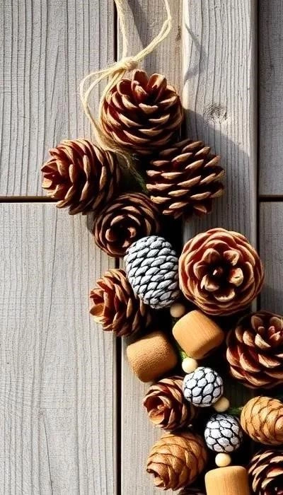 Новогодний декор из шишек особенно востребован. Их используют для создания венков, гирлянд, елочных игрушек и других украшений. В 2025 году, согласно трендам, ожидается популярность минималистичных композиций из шишек и еловых веток, а также венков-подсвечников.