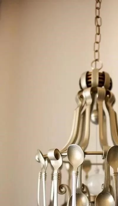 Стилистические решения: Люстры из ложек и вилок могут быть выполнены в различных стилях – от классического до современного. Для создания винтажного образа можно использовать серебряные или посеребренные приборы с изящным орнаментом. Для более лаконичного дизайна подойдут ложки и вилки из нержавеющей стали. Можно комбинировать различные формы и размеры приборов, чтобы создать уникальный и неповторимый светильник.