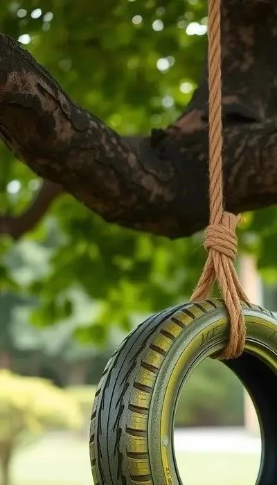 3. Качели из шины: Подвесьте шину на прочную веревку к дереву или специальной конструкции. Убедитесь в надежности крепления. Сложность: легкая.