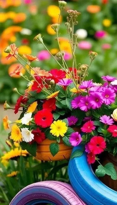 Старые автомобильные шины – это отличный материал для создания ярких и оригинальных клумб. Покрасьте шины в разные цвета, сложите их друг на друга или создайте из них фигуры животных. Такие клумбы станут настоящим украшением дачного участка.