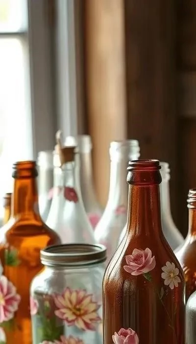 Декупаж бутылок и банок – простой способ украсить интерьер. Роспись по стеклу позволит создать уникальные цветочные узоры и абстрактные композиции. Витражные краски и пленки помогут воссоздать атмосферу старинных замков.