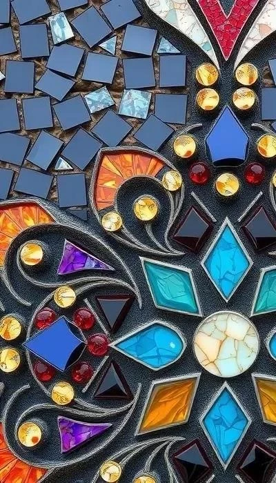 Декоративная мозаика более практична и используется для украшения интерьеров и экстерьеров. Она может быть выполнена из различных материалов, включая керамическую плитку, стекло, гальку и даже битую посуду. Декоративная мозаика часто используется для облицовки стен, полов, бассейнов и садовых дорожек. Примером может служить мозаичная столешница, украшенная яркими узорами.