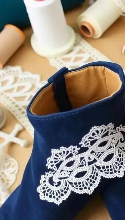 Кружево – это элегантный и женственный элемент декора. Кружево можно пришивать к обуви или приклеивать с помощью клея. Кружево хорошо сочетается с другими материалами, такими как кожа и замша. В 2026 году актуальны сочетания кружева с грубыми материалами, такими как деним и кожа.