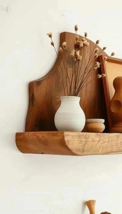 - Декор стен: Панно из природных материалов, картины, фотографии, зеркала, настенные полки.