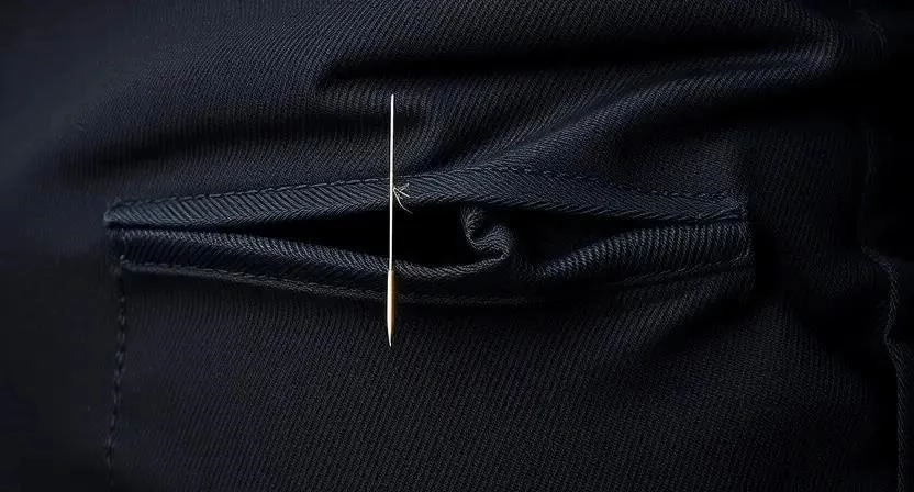 - Шаг 1: Введите иголку с ниткой с изнаночной стороны ткани на расстоянии 0,5-1 см от края разрыва. (Время: 1 минута, Сложность: Легко, Нюанс: Не затягивайте узелок слишком сильно).