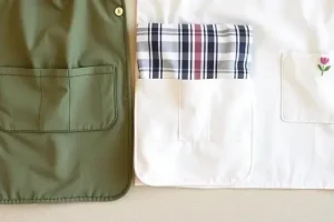 - Пришивание карманов: Пришейте карманы к основной детали фартука. Убедитесь, что карманы расположены симметрично.