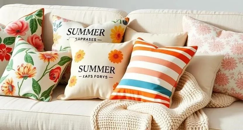 Замените обычные подушки на декоративные с яркими летними принтами: цветы, фрукты, морские мотивы.
