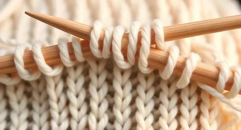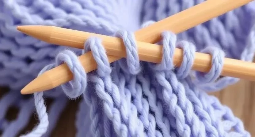 - Шаг 2: Первый ряд. Вяжите все петли лицевыми. (Время: 10-15 минут, Сложность: Легко, Нюанс: Правильно вводите правую спицу в петлю).