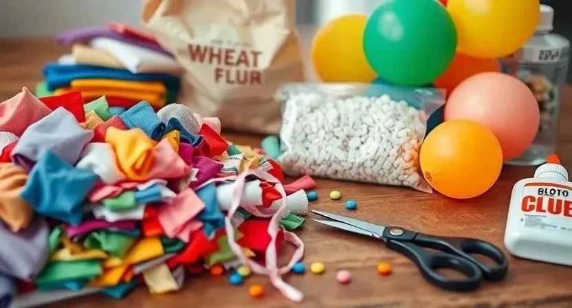 - Шаг 2: Заполните шарик мукой. Аккуратно засыпьте муку внутрь шарика, используя воронку или ложку. Не заполняйте шарик мукой до конца, оставьте немного места для воздуха. (Время: 5-7 минут, Сложность: Средне, Нюанс: Мука может пылить, работайте аккуратно).