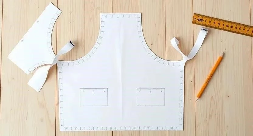 - При раскрое ткани: Убедитесь, что выкройка лежит ровно на ткани, чтобы детали фартука получились симметричными.