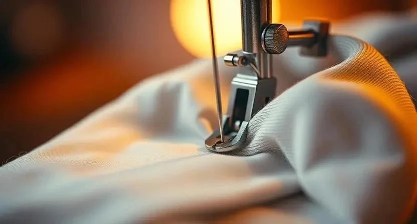 - Шаг 3: Прострочите детали фартука на швейной машинке, оставив небольшое отверстие для выворачивания. (Время: 30 минут, Сложность: Средне, Нюанс: Используйте подходящую строчку и натяжение нити).