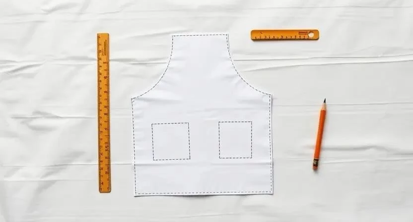 - Шаг 1: Вырежьте детали фартука по выкройке. (Время: 20 минут, Сложность: Легко, Нюанс: Аккуратно вырезайте по линиям выкройки).
