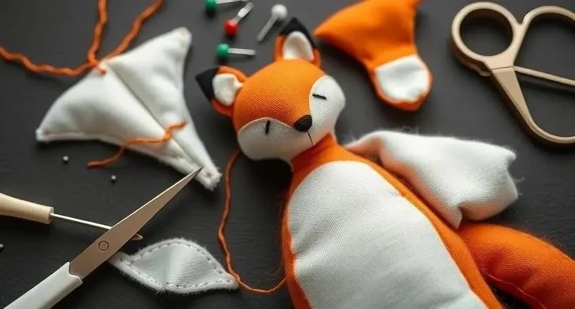 - Шаг 4: Сшивание хвоста. Сложите детали хвоста лицевыми сторонами внутрь и сшейте их, оставив отверстие для набивки. Выверните хвост на лицевую сторону, набейте наполнителем и пришейте к туловищу. Время: 15-20 минут. Сложность: Средне.