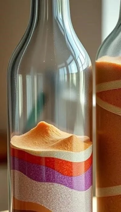 В 2026 году в декоре актуальны эко-стиль и минимализм. Цветной песок, созданный из соли и гуаши, очень популярен. Обдумайте материалы: марокканский песок, клей ПВА, кисти. Начинайте засыпать песок слоями, формируя узор.
