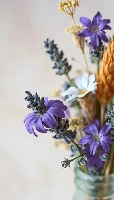 Сухоцветы – это практичное и стильное решение для декора. Они не требуют полива, не вызывают аллергии и сохраняют свою красоту на протяжении многих лет. Популярные виды: лаванда (аромат и прованский стиль), статица (яркие соцветия), гипсофила (нежность и воздушность), бессмертник (долговечность) и колосья пшеницы (рустикальный шарм).