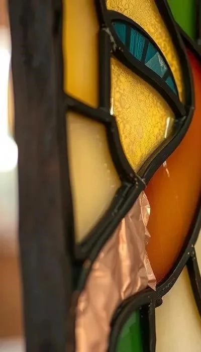 Техника Тиффани – это классический способ создания витражей, заключающийся в соединении кусочков стекла медной фольгой и последующей пайке. Этот метод позволяет создавать сложные и детализированные композиции. Процесс включает в себя вырезание стекла по шаблону, обмотку каждого кусочка медной фольгой, сборку композиции и пайку швов. Плюсы: высокая детализация, возможность создания сложных узоров. Минусы: трудоемкость, требует навыков пайки.