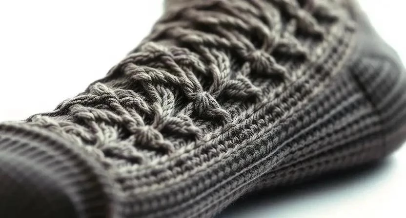 - Стопа: Вяжите стопу лицевой вязкой, чтобы она была плотной и прочной.
