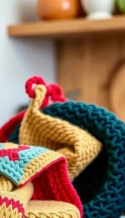 На кухне вязаный декор сочетает практичность и стиль. Вязаные прихватки защищают руки от горячей посуды. Вязаные салфетки украшают стол и создают уютную атмосферу. Вязаные чехлы для банок и ваз добавляют оригинальности и индивидуальности. Вязаные корзины для хранения помогают организовать пространство и хранить кухонные принадлежности.
