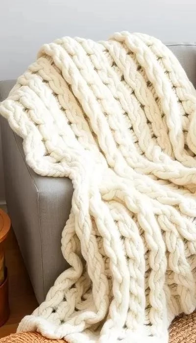 В 2026 году в вязаном декоре доминируют приглушенные природные оттенки: бежевый, серый, терракотовый и оливковый, создающие атмосферу спокойствия и уюта. Глубокие насыщенные цвета, такие как бордовый, изумрудный и сапфировый, используются как акценты, добавляя интерьеру элегантности.