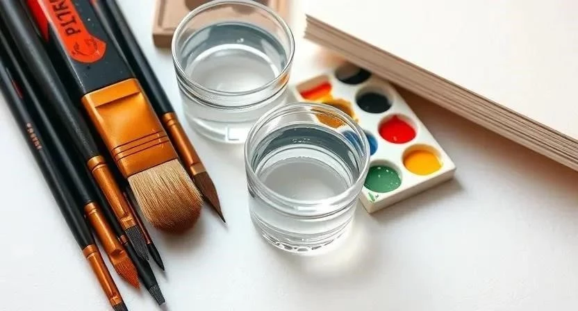 Что нужно для старта: Минимальный набор материалов и инструментов (акварель, кисти, бумага, соль, парафин, палитра, емкости для воды)