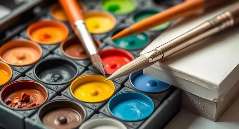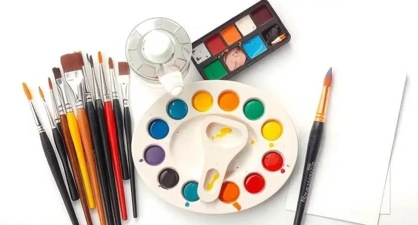 - Выберите материалы: Вам понадобятся акварельные краски, кисти, палитра, целлюлозная акварельная бумага, вода и тряпка.