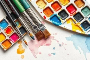 Обзор акварельных материалов: Краски (профессиональные, студенческие, акварельные карандаши), кисти (разные формы и размеры), бумага (разная текстура и плотность)