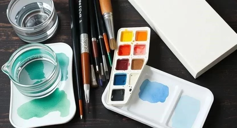 - Выберите материалы: Подготовьте акварельные краски, бумагу, кисти, палитру и емкость для воды.