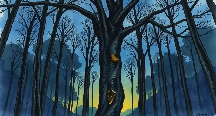 - Деревья: Нарисуйте силуэты деревьев на горизонте, используя темно-коричневый или черный цвет. Не прорисовывайте детали, достаточно лишь обозначить общую форму.