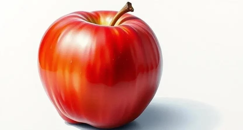 - Блики (10-15 минут, сложность: 3/10): Добавьте блики, чтобы подчеркнуть форму и текстуру фрукта. Используйте чистую воду или светлую акварель.